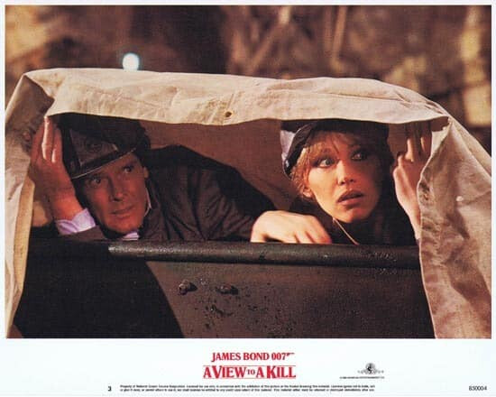 Upon opening a secret cabinet, Bond will give an instant discourse on how Zorin drugs his horses. Later, Stacy, in similar style, will uncover a map, and explain what Zorin’s nefarious plan is, and how calamitous it will be. She is even able to get the map’s lights and animation to work. All this and more occurs, because this is what happens in a James Bond film–the repetitions and variations testifying to both absurdity and continuity. It can’t go on. It must go on.