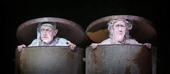 Endgame, like Godot, is about repetition, with some changes rung. The play begins with Hamm announcing “Me to play,” and over the course of 85 minutes, stories are told and re-told, and actions taken and re-taken. There are some variations, and the play does not deny that time passes, and that the characters age. For example, this is the day that Nell will die, and when Clov looks out the window, he will see a boy in the landscape. But still Hamm will wipe his glasses, and ask if it is time for his painkiller. Clov will remove the sheets and open the curtains, and tell Hamm what the weather is like. At the end of the play, when Clov appears with his raincoat and bags (but does not move), does this mean he will finally leave Hamm? Is their endgame finished at last?